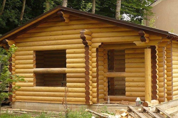 Строительство бани из рубленых бревен. Они сложнее в подгонке деталей, потребуют больше хлопот с утеплением межвенцовых просветов, но зато такое сооружение прослужит намного дольше.