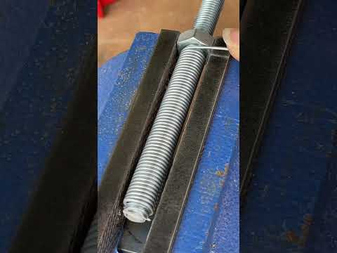 Теперь необходимо зажать шпильку гайкой в тисках. В пропил вставляется стальная проволока и накручивается по резьбе на шпильку.