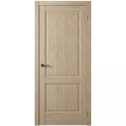Такой вариант представляет собой прочную сборно-разборную конструкцию с покрытием из экошпона. Каркас этого глухого полотна в цвете «дуб натуральный» выполнен из древесно-стружечного бруса, а филенки – из древесноволокнистой плиты средней плотности. Толщина двери – 36 мм. Среди особенностей – покрытие ТМ Renolit, наличие заводской врезки под защелку.