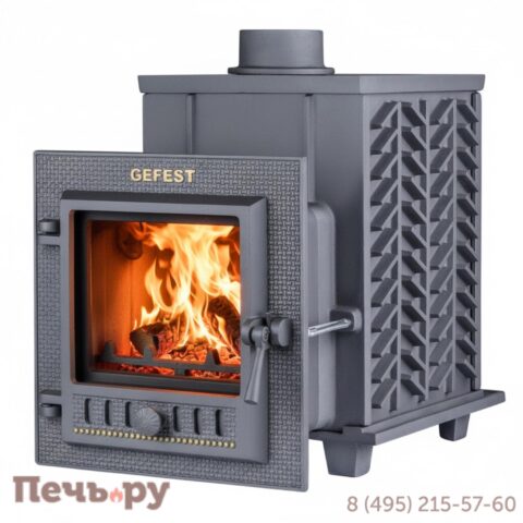 Эта позиция произведена из чугуна, способного выдерживать температуру до 600С и интенсивно передавать тепло. Такая печь имеет особую 2-х камерную топку с дожигом пиролизных газов, в которой располагается нагреваемая прямым огнем каменка. Устройство необходимо топить сухими дровами. Изделие собирается без применения болтов.